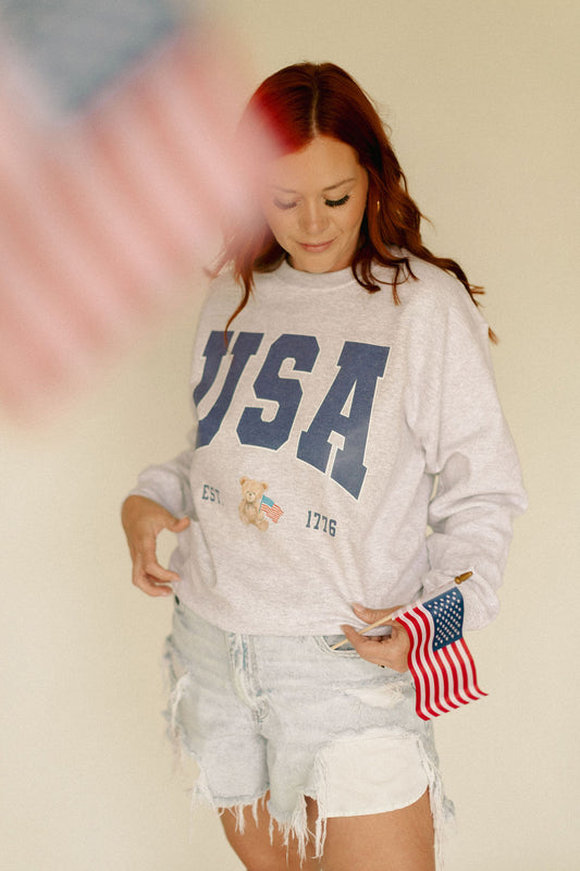 USA Teddy Bear Graphic Sweatshirt