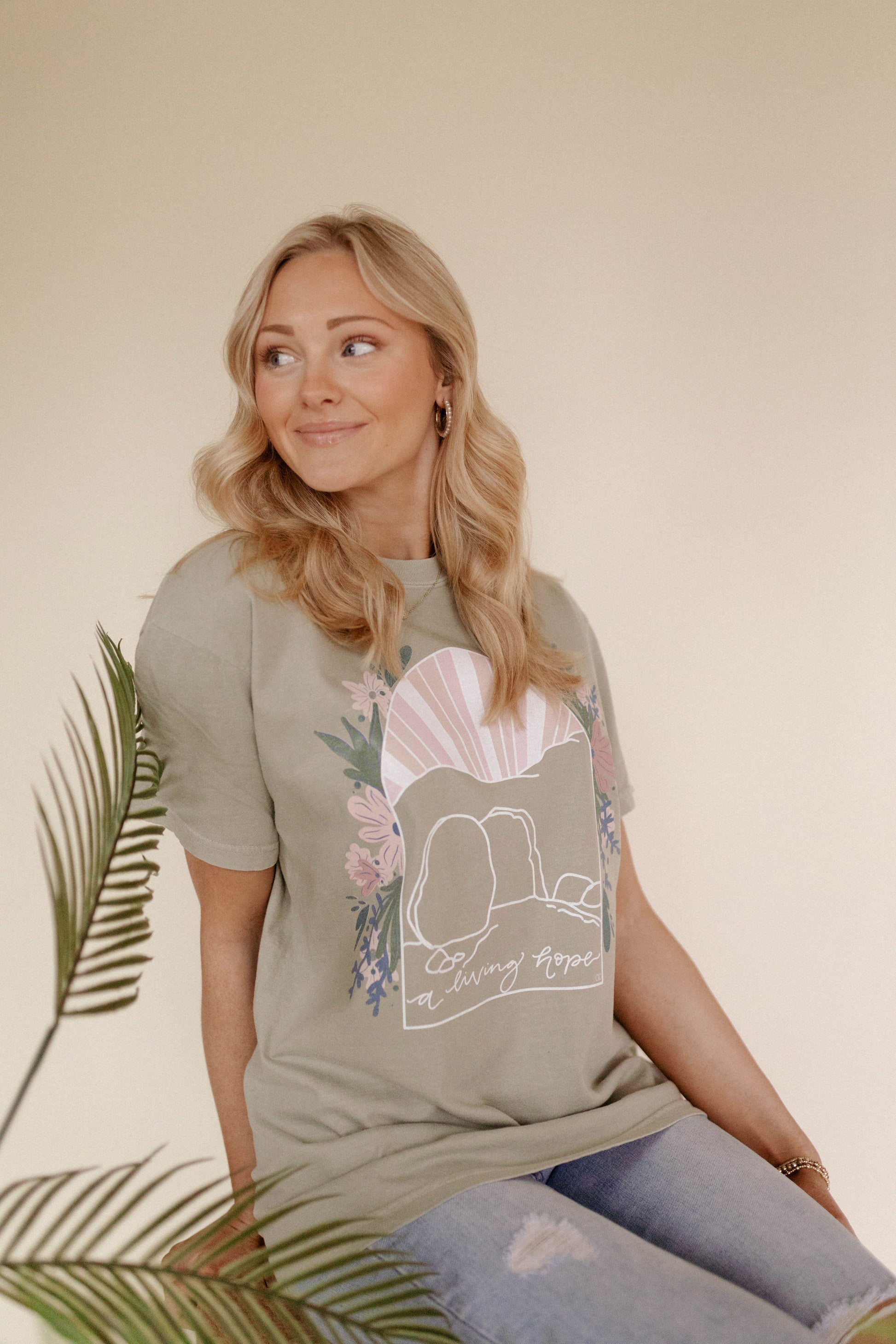 Celebrate the season of new beginnings with our Living Hope graphic tee! Our hand drawn graphic features our floral grave with rolling stone.