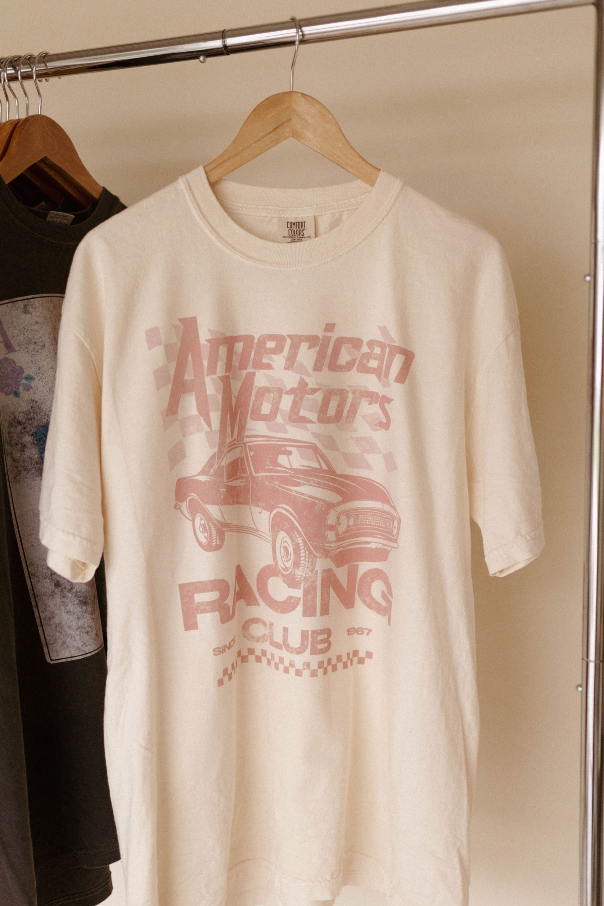 Join the Racing Club trend with our American Motors graphic tee! A timeless graphic that features a vintage and nostalgic design! She's hand drawn and a one of a kind graphic, printed on an ivory tee.