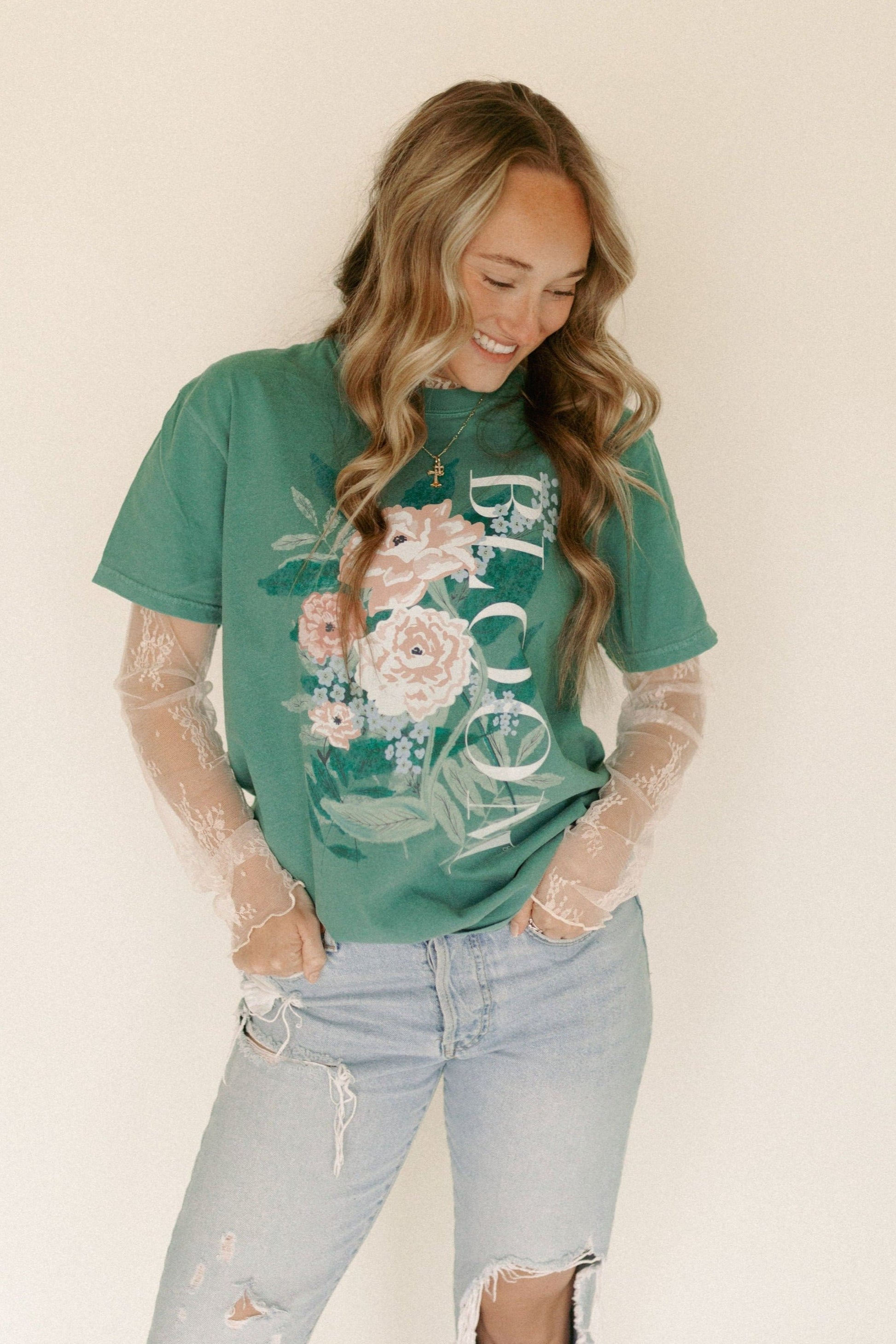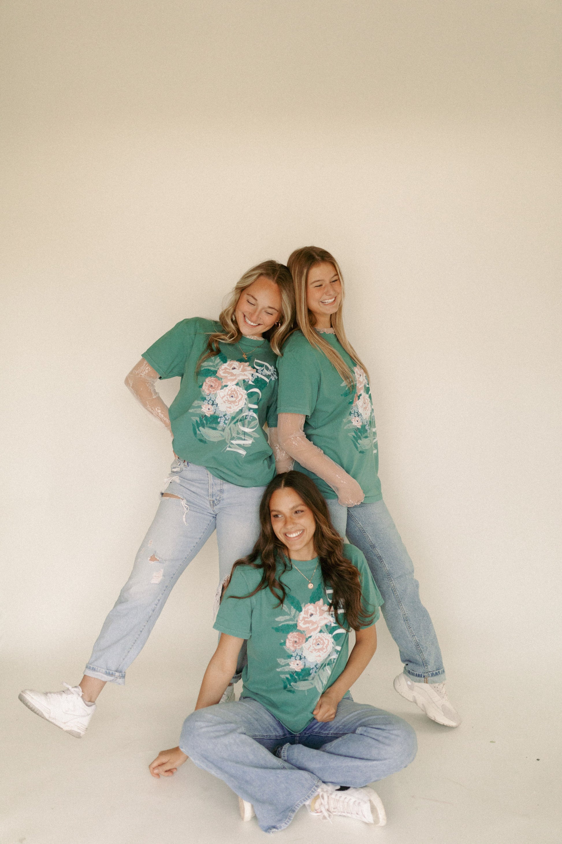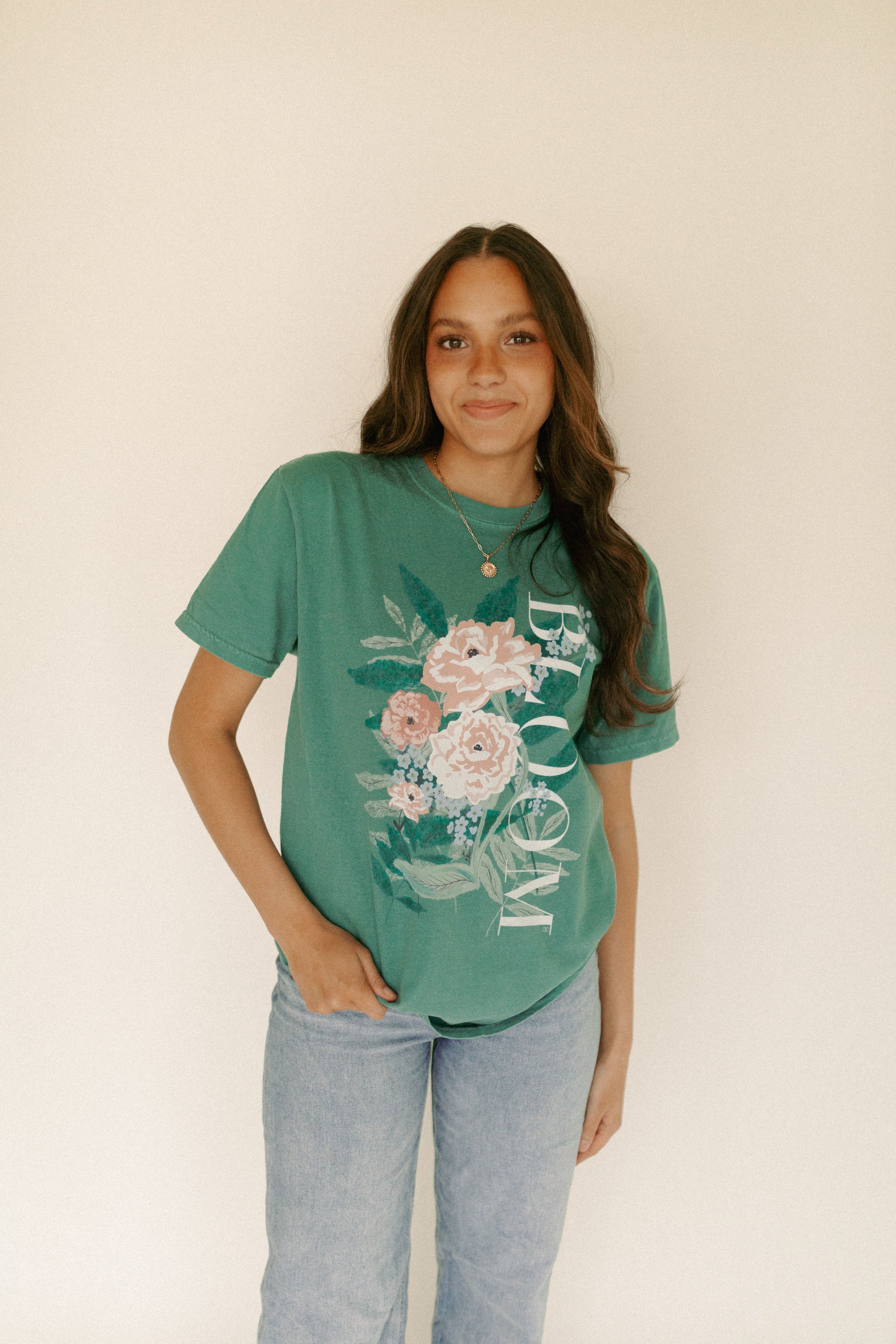 Bloom into spring with our whimsy + colorful "Bloom" tee. Where our hand-drawn florals take center stage, enriched in playful monochromatic colors.