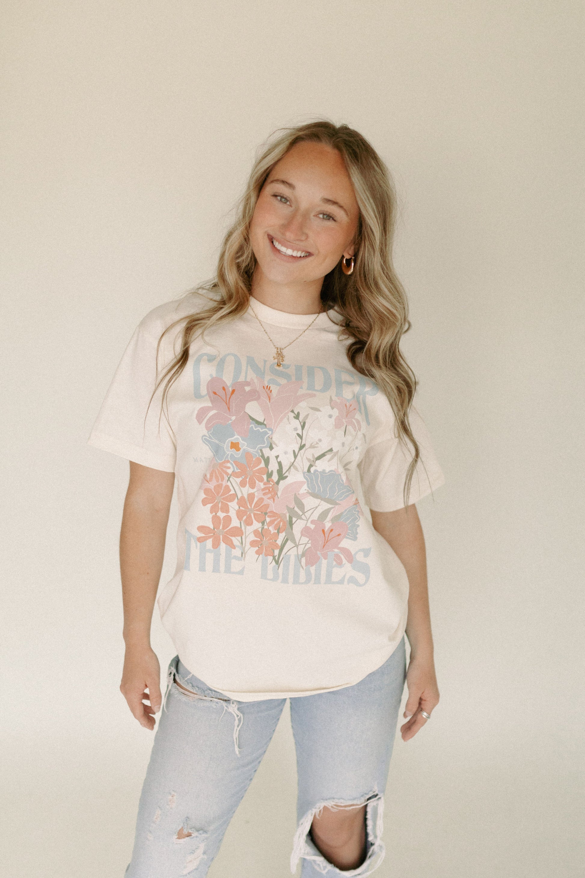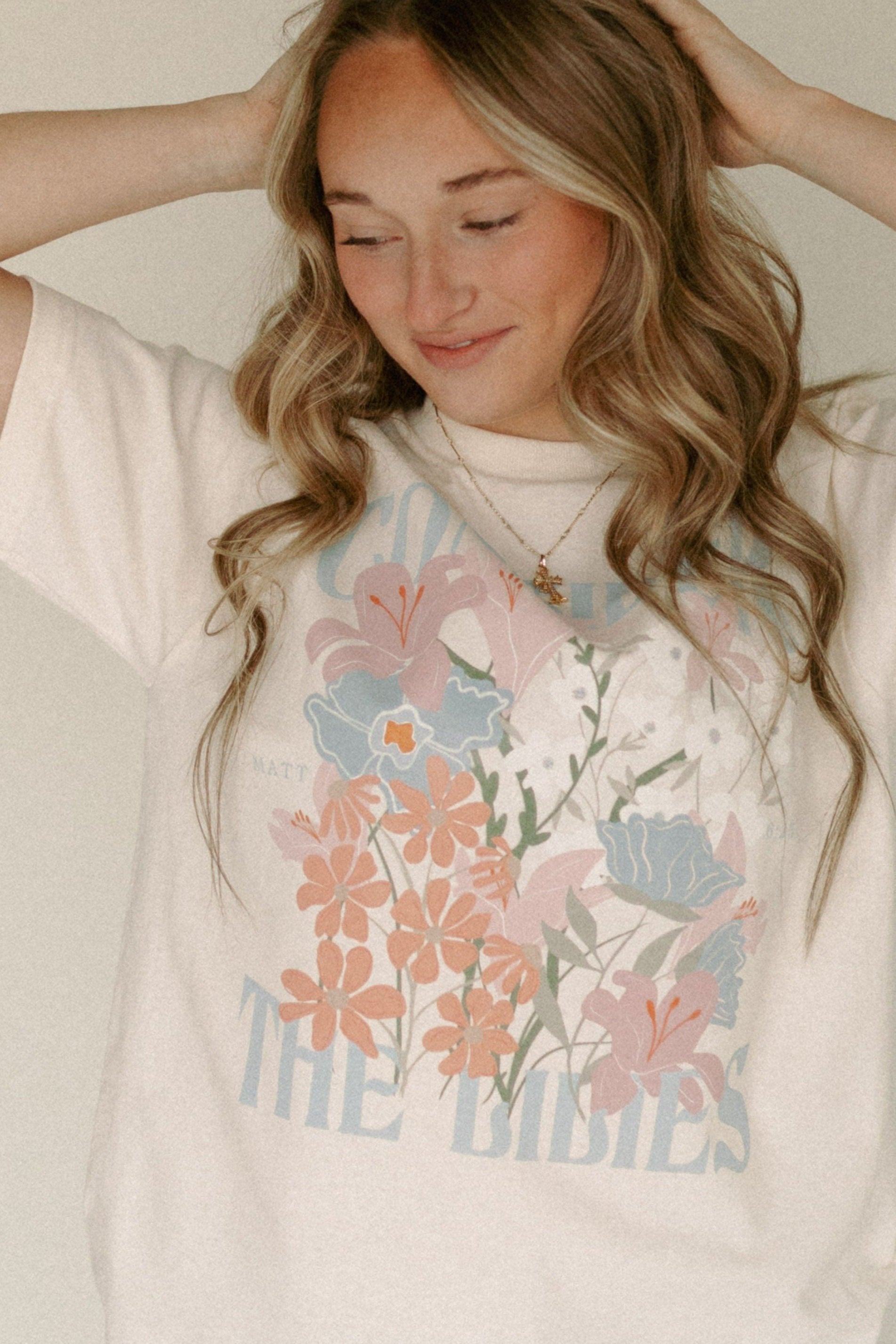 This graphic is beautifully printed from top to bottom with our freshly drawn lilies + wildflowers. These spring colors can easily be matched for styling with layers!