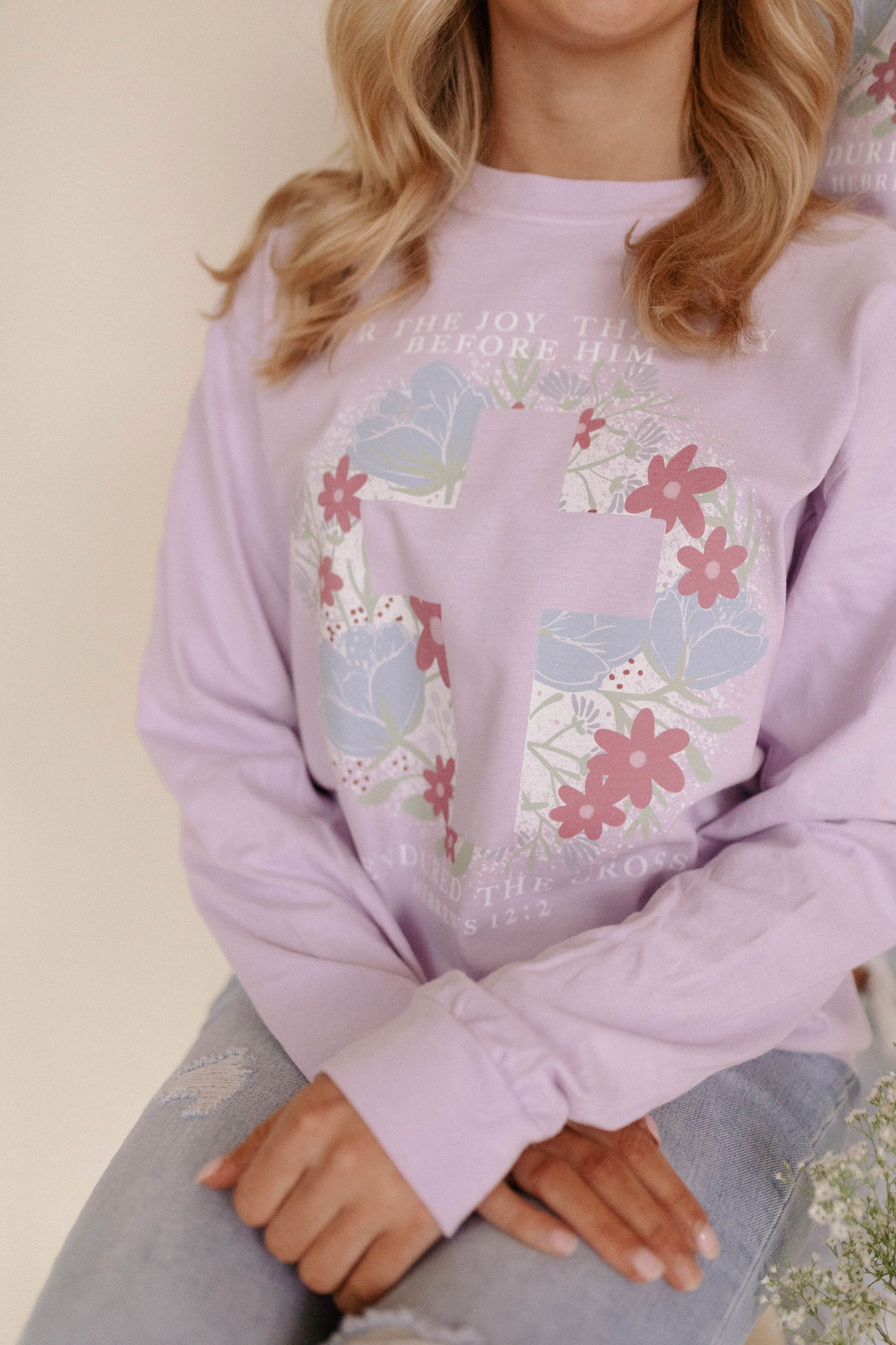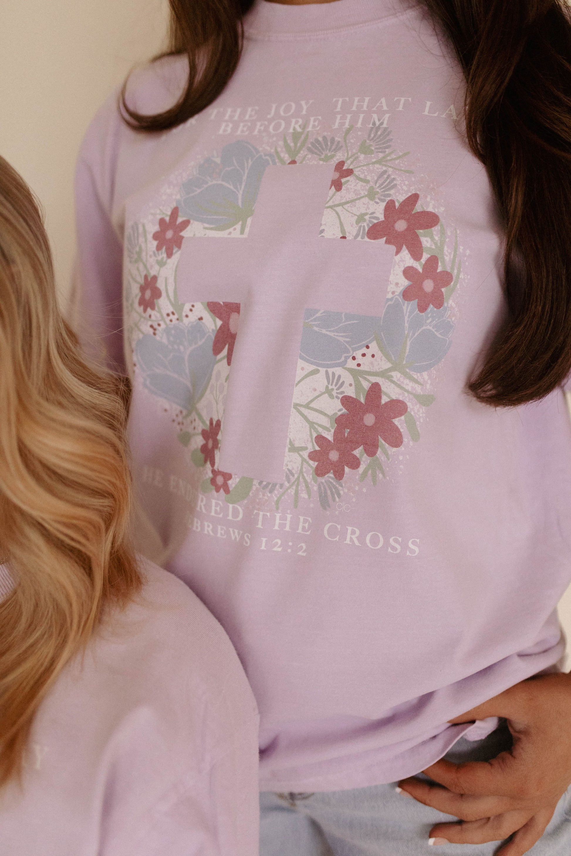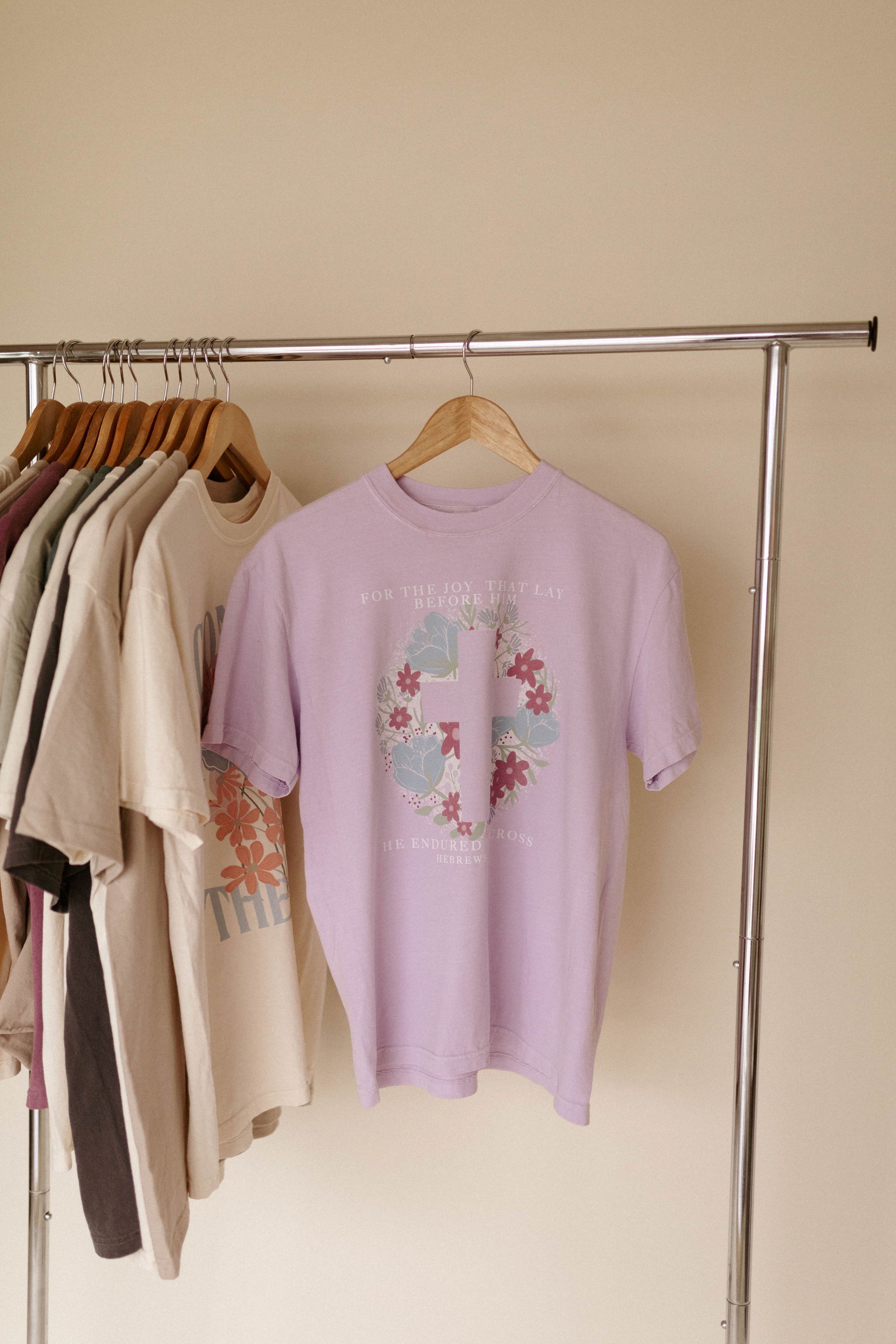 Spread the joy and hope of spring with our lavender Easter tee. Uniquely created with our perfectly designed floral cross and spring color palette.