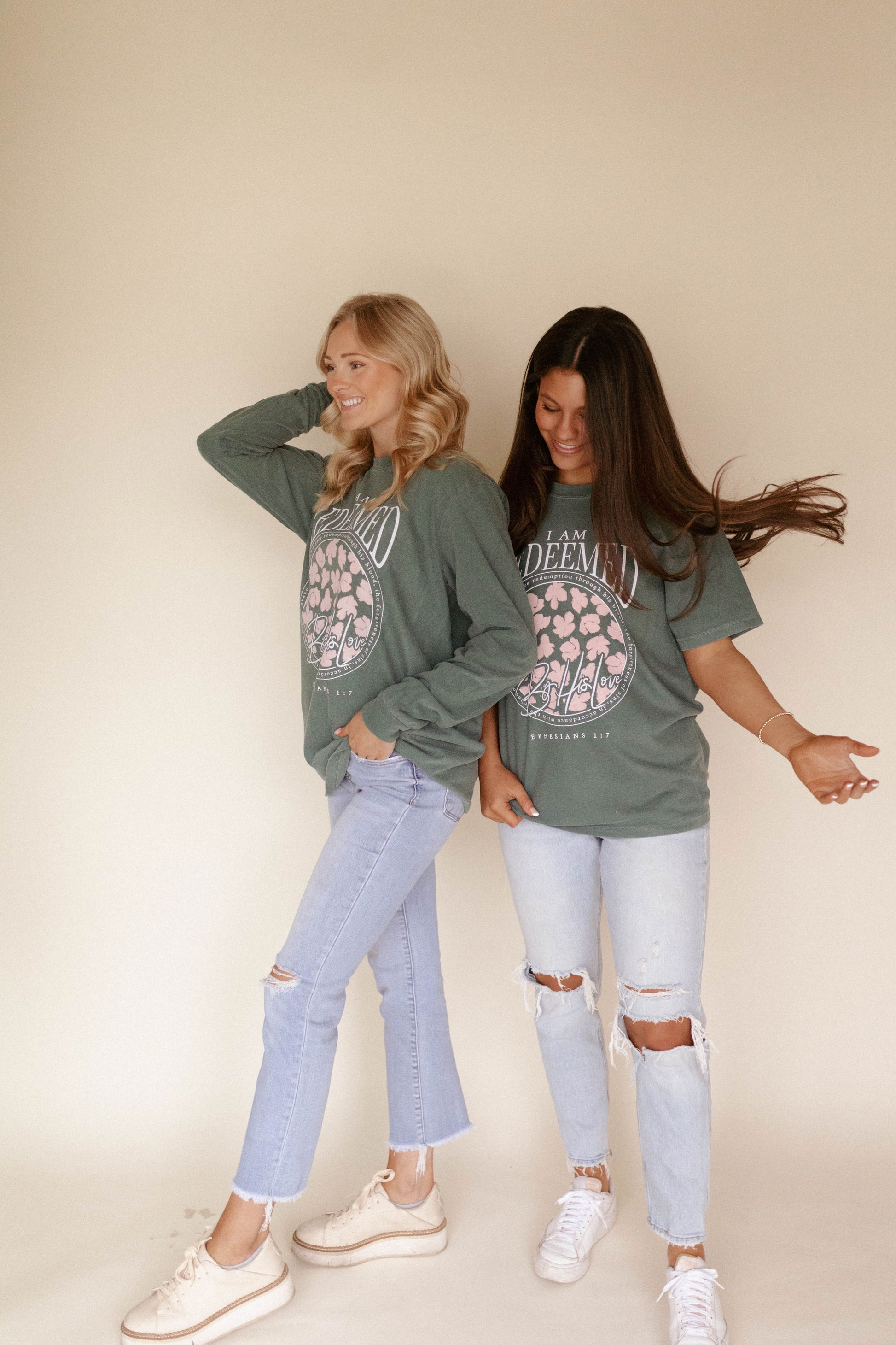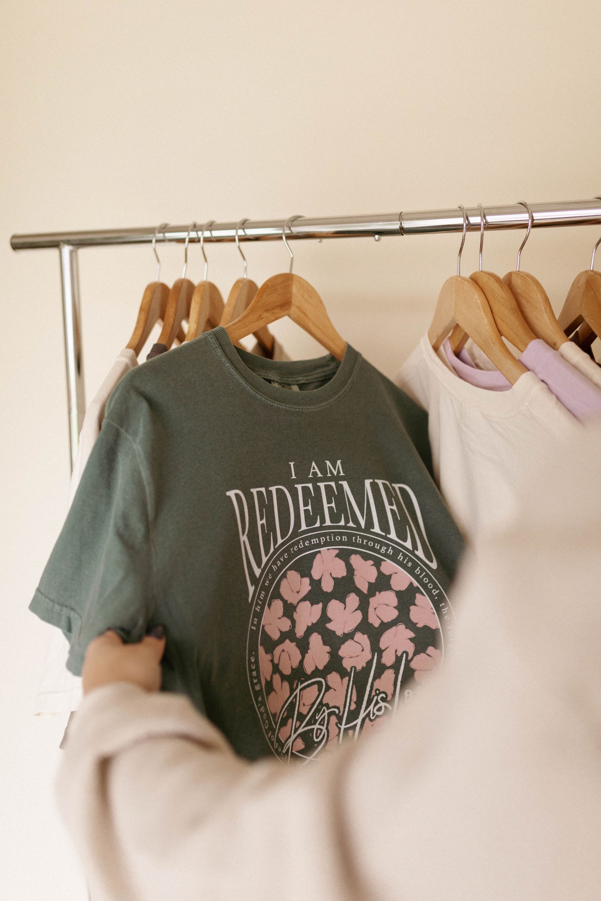 Embrace the hope of the season with our " I Am Redeemed" tee. Printed on the prettiest spruced blue color, a statement graphic that can be easily worn year around!