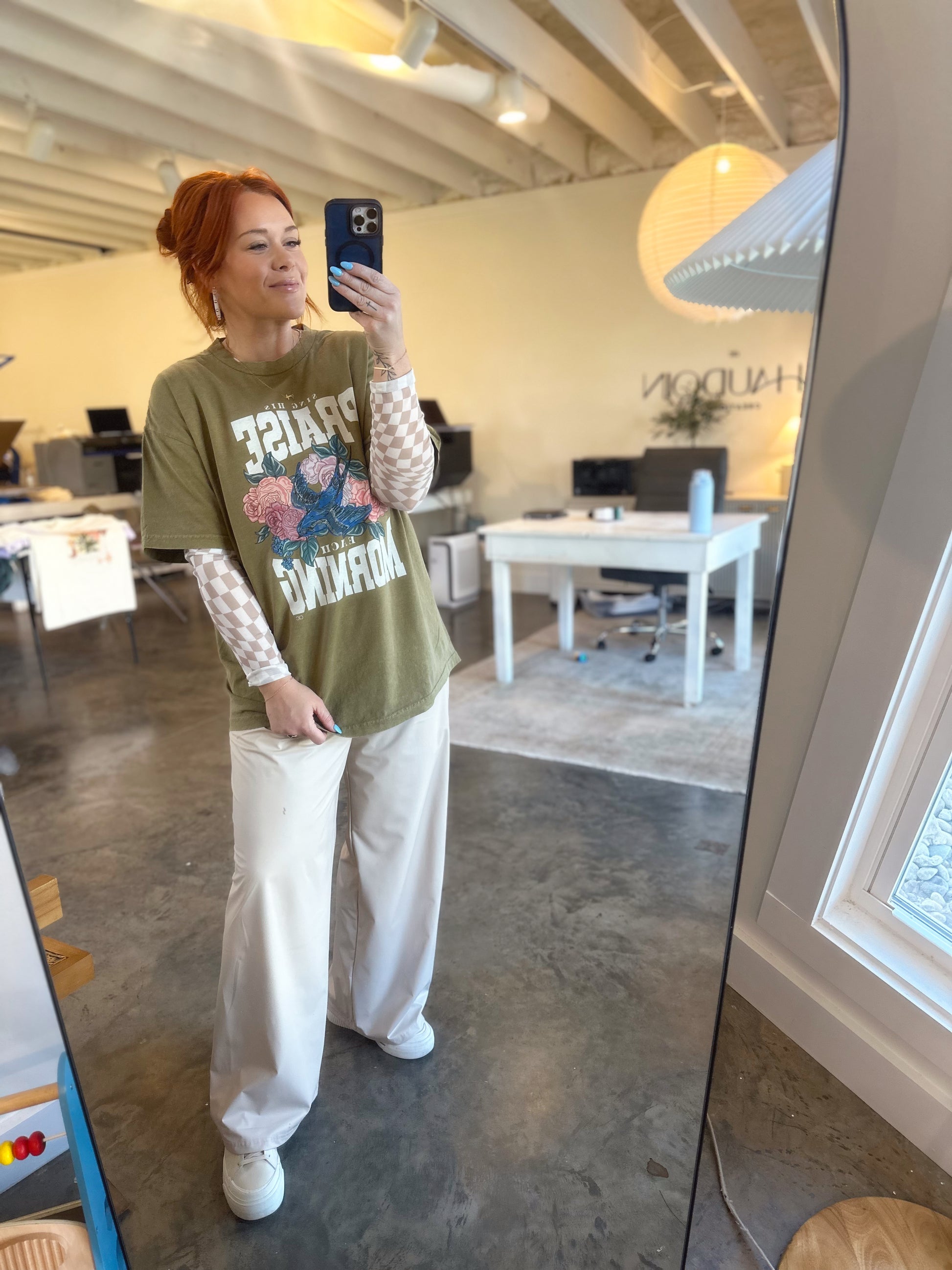 Making His praises bloom, with our "Sing His Praise Each Morning" tee. This vibrant design features our hand-drawn florals and our whimsical birdie.